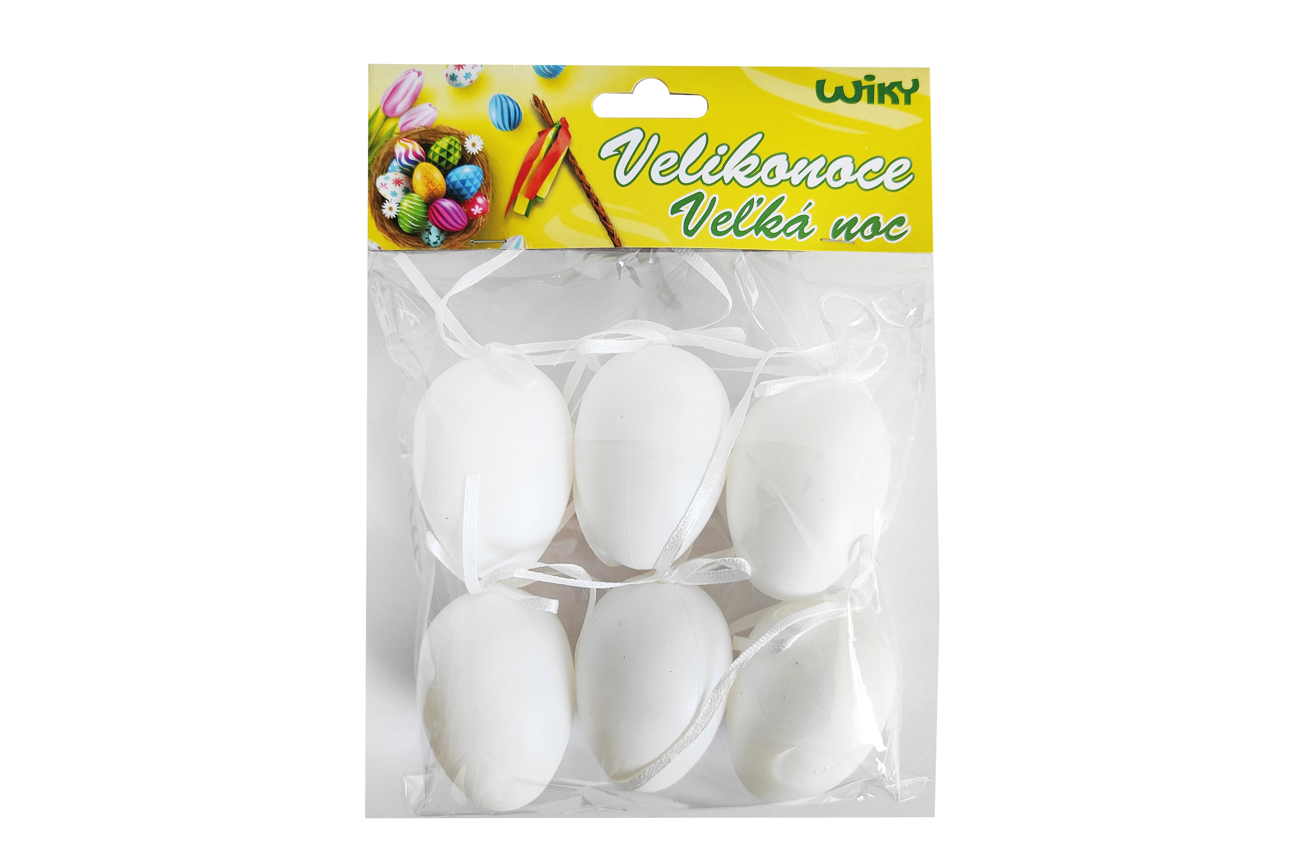 Dekorative weiße Plastikeier zum Aufhängen 6 cm