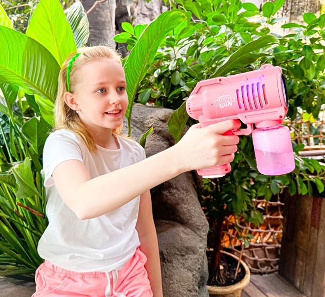 Diese pinke Seifenblasenpistole verwandelt jeden Moment in eine magische Blasenshow. Füllen Sie den Behälter, drücken Sie den Abzug, und innerhalb von Sekunden tanzen Hunderte von Blasen um Sie herum. Dank der Soundeffekte macht das Spielen noch mehr Spaß und Kinder sind sofort begeistert.