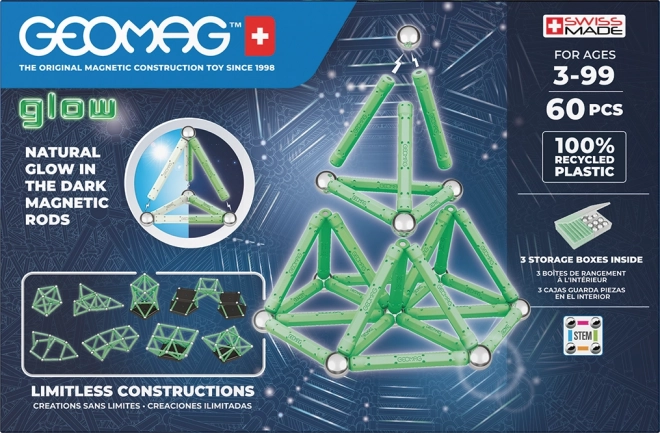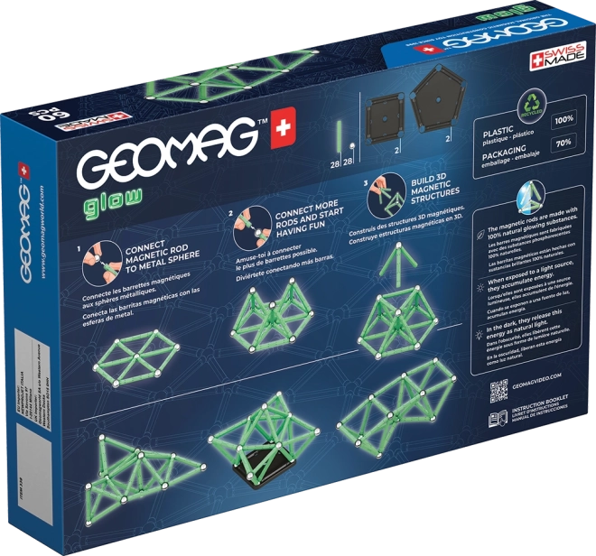 Das Geomag Glow Set verbindet Spaß und Lernen. Leuchtende Magnetstäbchen erwachen nach Einbruch der Dunkelheit zum Leben und verwandeln jedes Modell in eine faszinierende Lichtshow. Die Teile bestehen aus 100 % recyceltem Kunststoff – spielerisch und nachhaltig zugleich.