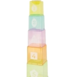 Becher in unterschiedlichen Größen lassen sich leicht zu einem stabilen Turm stapeln und fördern Griff, Koordination und Geduld.