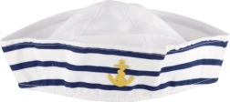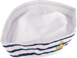 Tauche ein in die Welt des Meeres mit der klassischen Seemannsmütze, die durch reines Weiß, blaue Streifen und ein aufgesticktes Ankersymbol hervorsticht. Die Mütze ist aus angenehm zu tragendem Textil gefertigt, sodass du sie problemlos den ganzen Abend tragen kannst.