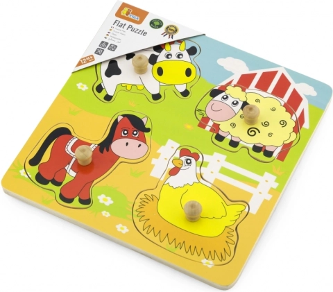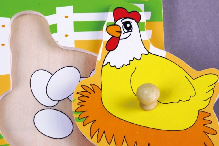 Entdecken Sie ein unterhaltsames und lehrreiches Spielzeug für die Kleinsten – ein Holz-Steckpuzzle mit Bauernhoftieren. Dank der Griffe liegen die Teile gut in der Hand und Kinder fördern spieleri... Mehr anzeigen