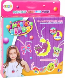 Das Set enthält Plastikkorallen, die sich mit einem Tropfen Wasser verbinden lassen, um dauerhafte Formen und Figuren zu erstellen. Nach der Erstellung verschiedener Dekorationen oder Anhänger kann das Kinderzimmer ein völlig neues Aussehen bekommen. Inspiration kann in der beiliegenden Anleitung oder auf der Verpackung gefunden werden.