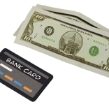 Zum Lieferumfang gehören eine Plastikkarte und falsche Geldscheine zur Förderung der Vorstellungskraft der Kinder.
