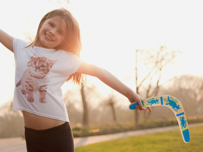 Der Holz-Bumerang ist von australischer Tradition inspiriert und für modernes Freizeitspiel angepasst. Sein ausgewogenes Profil und die richtige Rotation ermöglichen bei korrektem Wurf die Rückkehr zum Werfenden. Farbige Drucke mit Känguru-Motiven verleihen Stil und erhöhen die Sichtbarkeit in der Luft.