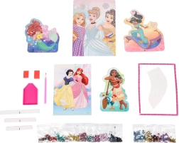 Betreten Sie die zauberhafte Märchenwelt mit dem kreativen Set DISNEY PRINCESS. Jeder markierte Punkt auf der Schablone entspricht der Farbe des Steinchens – so ist das Basteln einfach, übersichtlich und sehr zufriedenstellend. Das Ergebnis? Ein wunderschön glitzerndes Bild, das jedes Kinderzimmer erhellt oder als originelles Geschenk begeistert.