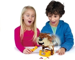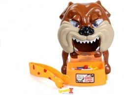 Nehmen Sie die Knochen aus dem Napf, aber passen Sie auf, den Hund nicht zu wecken, denn er ist sehr wütend! Alles, was Sie tun müssen, ist, den wütenden Hund für das Spiel vorzubereiten. Setzen Sie dazu die Batterien ein (nicht im Lieferumfang enthalten) und spannen Sie ihn, bis er seinen Kopf auf die linke Pfote legt und die Augen schließt. Das Spiel beginnt mit dem jüngsten Spieler – er wählt einen Knochen aus und versucht, ihn mit der beiliegenden Pinzette herauszunehmen. Wenn der Hund aufwacht, scheidet der Spieler aus dem Spiel aus. Um das Spiel fortzusetzen, muss der Bulldogge wieder zum Schlafen gebracht werden. Das Spiel geht weiter, bis nur 1 Spieler übrig bleibt, den der Hund nicht gebissen hat – dieser Spieler ist der Gewinner.