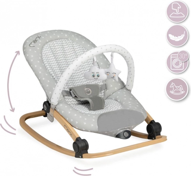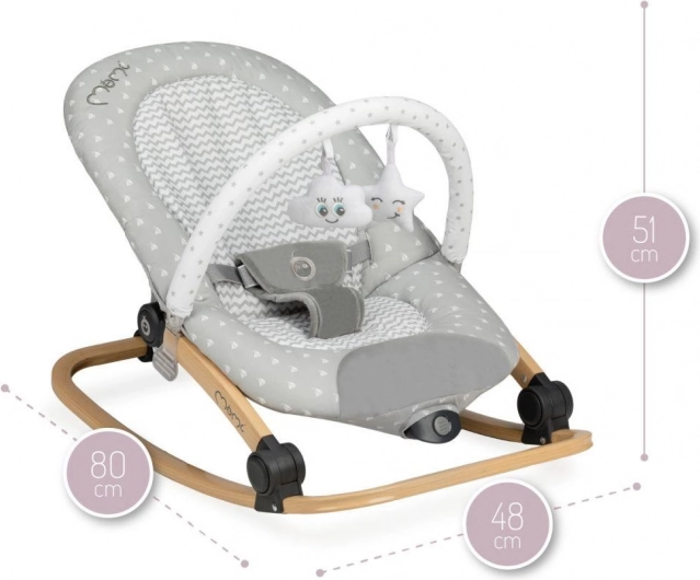 Vibrations-Wiege MoMi Lumiwood, bequem und sicher mit Melodien, Spielzeug und einfacher Pflege.