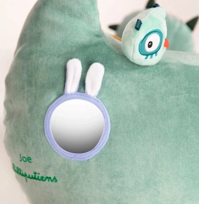 Drache Joe ist aus weichem Polyester gefertigt, was sicherstellt, dass er für Kinder ab sechs Monaten sicher ist. Mit den Maßen 75 x 35 x 38 cm bietet er ausreichend Platz für spielende Kinder. Ein praktischer eingenähter Riemen vereinfacht das Tragen. Zur Erhaltung der Sauberkeit kann das Spielzeug im Schonwaschgang bei 30° in der Maschine gewaschen werden.