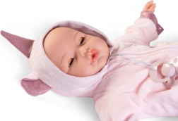 Die Puppe gibt authentische Geräusche eines weinenden Kindes von sich und sagt "Mama", "Papa", wenn Sie ihr den Schnuller herausnehmen.