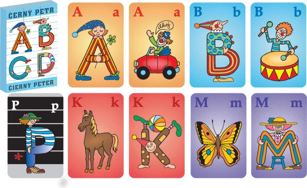 Kinderkarten für das Spiel Schwarzer Peter mit Alphabet-Motiv bieten Spaß für die ganze Familie. Ergonomisches Design für einfache Handhabung.