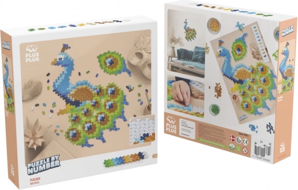 Erstelle ein wunderschönes Mosaik mit dem Plus-Plus Nach-Zahlen-Legen Pfau, das 800 Teile für kreatives Gestalten enthält.