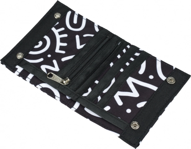 Leichte und kompakte Geldbörse, die an alles Wesentliche denkt. Dank der zwei Druckknöpfe bleibt sie sicher geschlossen, das Münzfach mit Reißverschluss hält Kleingeld unter Kontrolle und es gibt selbstverständlich Platz für Banknoten, Zahlungskarten und Ausweise. Ideal für Schüler und den täglichen Gebrauch.