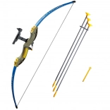 Das Set enthält einen beeindruckenden Bogen, der 102 cm lang ist und in attraktiven blauen Farben mit gelben und goldenen Akzenten gestaltet ist. Drei Pfeile in grau-gelber Farbkombination sind mit einem Gummisaugnapf versehen, was für sichere Verwendung sorgt und das Verletzungsrisiko minimiert.