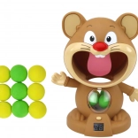 Das Spielset ist sehr einfach zu bedienen. Laden Sie die Pistole mit weichen Kugeln und zielen Sie auf das Hamstermaul. Wenn Sie die Zunge des Hamsters treffen, gibt das Spiel ein Bestätigungssignal ab und auf dem kleinen LCD-Display sehen Sie Ihre erreichten Punkte. Zum Set gehören außerdem die Pistole und spezielle weiche Bälle für stundenlangen Spielspaß.