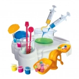 Zahlreiche Experimente ermöglichen es Kindern, mit Farben, Gewichten und Maßen zu spielen, Lösungen herzustellen, die Eigenschaften von Wasser kennenzulernen und viele weitere wissenschaftliche Fakten zu entdecken.