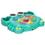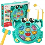 Das Spielzeug bietet zwei Spielmöglichkeiten – Krabben mit einem Hammer schlagen und Fische mit einer Angelrute fangen.