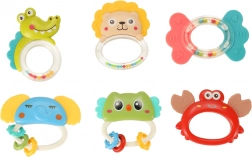 Dieses bunte Set aus 6 sensorischen Rasseln und Beißringen ist der ideale Begleiter ab den ersten Lebenstagen. Jedes Spielzeug besticht durch eine einzigartige Form und Farbe und dient dank weicher Ränder als schonender Beißring in der Zahnungsphase.