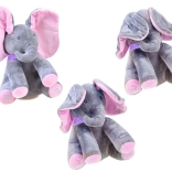 Dieser Plüschelefant ist das ideale Spielzeug für Kinder, die Musik und interaktiven Spaß lieben. Beim Drücken der rechten Pfote erklingt „Do Your Ears Hang Low“, der Elefant singt und bewegt die Ohren. Die linke Pfote startet „Peek-A-Boo, where are you?!“ und der kleine Elefant fordert zum Versteckspiel auf.