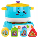 Der interaktive Herd ist ideal für kleine Köche und bietet eine Kombination aus Licht- und Soundeffekten, die das Kochen simulieren. Das Spielzeug imitiert Geräusche von kochendem Wasser, Braten und dem Zünden des Gases, ergänzt durch fröhliche Melodien und blinkende Lichter. Das Spielzeug hilft Kindern, manuelle Fähigkeiten zu entwickeln und die richtigen Formen den entsprechenden Öffnungen zuzuordnen.