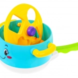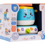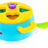 Im Lieferumfang ist ein Topf enthalten, der als Formensortierer dient und eine Herausforderung sowie Freude über das erfolgreiche Lösen bietet. Das Spielzeug wird mit zwei AA-Batterien betrieben (nicht im Lieferumfang enthalten), die langanhaltenden Spielspaß ermöglichen.