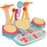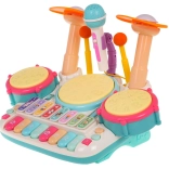 Interaktives Musikset, Klavier mit Trommeln für Kinder ab 3 Jahren. Das Musikalische Spielzeug besteht aus hochwertigstem Kunststoff in lebendigen Farben und unterstützt das Kind beim Spielen und beim Erlernen von Musikinstrumenten. Das Spielzeug kombiniert Schlaginstrumente und Klavier und ist mit einem Mikrofon und einem Soundsystem ausgestattet. Die Tasten erzeugen Klavier-, Trompeten-, Gitarrenklänge, Tierlaute sowie Zahlennamen. Drei Trommeln und ein Becken leuchten bei jedem Schlag mit den Sticks auf. Es gibt außerdem einen Lernmodus, bei dem auf den Trommeln Lichter erscheinen (ein Licht, Doppellicht, Dreifachlicht – mit unterschiedlicher Geschwindigkeit) und das Kind lernt, Rhythmen zu klopfen. Das Musikspielzeug verfügt über eine Lautstärkeregelung und einen Mikrofoneingang, der Teil des Sets ist. Das Spielzeug wird mit 4 AA 1,5-V-Batterien betrieben (nicht im Lieferumfang enthalten). . Funktionen des Sets: . - geeignet für Kinder ab 3 Jahren, .- hergestellt aus hochwertigstem Kunststoff, .- keine scharfen Kanten, .- lebendige Farben ziehen Kinderaugen an, .- beleuchtete Trommeln und Becken, .- Mikrofon mit Beschallung, .- Spiel- und Lernmodi, .- Klavier-, Trompeten-, Gitarren-, Tier- und Zahlenklänge, .- Lautstärkeregelung, .- Mikrofoneingang, . |