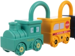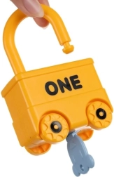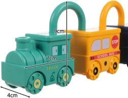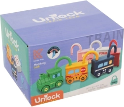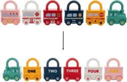 Dieses clevere Lernspielzeug verbindet Spaß mit sinnvoller Förderung. Jedes Fahrzeug ist ein Schloss, zu dem ein bärenförmiger Schlüssel mit eingeprägter Zahl 0–5 gehört. So trainiert das Kind auf natürliche Weise Feinmotorik, logisches Denken und Zahlerkennung. Der obere Teil des Schlosses lässt sich um 360° drehen; nach dem richtigen Aufschließen lassen sich die Fahrzeuge leicht zu einem langen Zug verbinden.