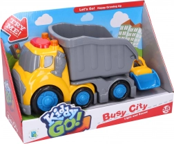 Mit diesem Kiddy-Baufahrzeug-Set genießen Kinder stundenlangen kreativen Spielspaß. Der Kipplaster mit Anhänger hat bewegliche Türen und Effekte, die über die Taste auf dem Kabinendach aktiviert werden, während der Bulldozer mit einer beweglichen Schaufel zum Beladen und Entladen ausgestattet ist. Dank der Freilauf-Räder lassen sich die Fahrzeuge auch von den jüngsten Fahrern leicht steuern.
