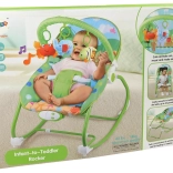 Die Liege wächst mit dem Kind – anfangs als beruhigende Babywippe, später als praktischer Kinderstuhl. Der tiefe, weiche Sitz mit 2-facher Verstellung bietet Halt und Komfort, während Vibrationen beim Einschlafen helfen. Der abnehmbare Bogen mit Hängespielzeugen motiviert zum Greifen und fördert die Sinnesentwicklung.