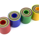 Stapelbecher sind ein klassisches Lernspielzeug, mit dem Kinder die Präzision ihrer Bewegungen trainieren und Größenverhältnisse verstehen. Jeder Becher hat andere Maße und eine andere Farbe – so lässt sich ein hoher Turm bauen oder alles ineinander stecken, um Logik und Geduld zu fördern.