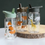 Transparente Kindertrinkflasche mit fröhlichem Savannentiere-Motiv und einem Fassungsvermögen von 450 ml. Sie ist auslaufsicher, leicht und ideal für Ausflüge, Kindergarten und Schule. Passend dazu gibt es Rucksack und Brotdose im selben Design.