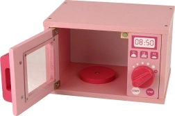 Diese Holz-Mikrowelle fördert Fantasie, Rollenspiel und Feinmotorik. Kinder können Erwachsene nachahmen, „Mittagessen“ zubereiten und richtige Abläufe beim Kochen lernen. Das stilvolle rosa Design passt in jede Kinderküche.