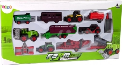 Set aus Bauernhoffahrzeugen – Metalltraktoren und Maschinen (12 Stk.)