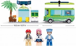 Im Set enthalten sind außerdem eine dekorative Haltestelle und eine Palmenfigur, die dem Spielumfeld ein realistisches Aussehen verleihen.