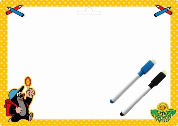 Beidseitige Tafel mit Krtek-Motiv ist ein ideales Werkzeug für wiederholtes Üben von Schreiben und Zeichnen. Im Lieferumfang sind zwei abwischbare Stifte enthalten, die ein einfaches Löschen und erneutes Verwenden ermöglichen.