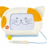 Zeichentafel in Form einer Katze mit einem an einer Schnur befestigten Stift ermöglicht wiederholtes Zeichnen ohne Durcheinander.