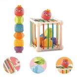 Der sensorische Würfel und Sortierer WOOPIE BABY ist ein cleveres Lernspielzeug von Geburt an. Elastische, farbige Gummibänder geben angenehm nach, sodass Kinder die Teile sicher einsetzen und herausziehen können und dabei Motorik, logisches Denken und Sinne fördern. Geeignet sowohl für das selbstständige Spiel als auch für gemeinsames Entdecken mit den Eltern.