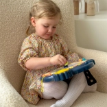 Enthalten sind 4 Stempel zur Verzierung der Bilder und ein befestigter Stylus, der nicht verloren geht. Die integrierten Soundtasten bieten über 400 Möglichkeiten: lustige Effekte, Kinderlieder, elektronische Sounds, eine Lektion des englischen Alphabets sowie eine Trommel – ideal zur Förderung von Kreativität, Fantasie und auditiver Wahrnehmung.