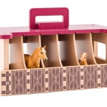 Der Stall besteht aus hochwertigem Holz und ist so konzipiert, dass er dem täglichen Spielen standhält. Sechs separate Boxen ermöglichen eine übersichtliche Aufbewahrung von Pferdefiguren und Zubehör. Ideal als Geschenk für kleine Tier- und Pferdeliebhaber.