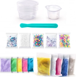 - 5 Beutel mit buntem Schleim, 5 Beutel DIY-Schleim, 5 Arten von Verzierungen für den Schleim, 5 x Becher, Spachtel zum Mischen