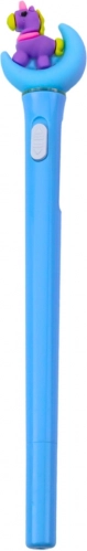 Dieses perfekte Geschenk oder Schulzubehör ist mit einem gummierten Endstück in Form eines Einhorns auf dem Mond ausgestattet. Das LED-Licht mit Schalter trägt zu einem außergewöhnlichen Schreibvergnügen bei dunkleren Bedingungen bei.