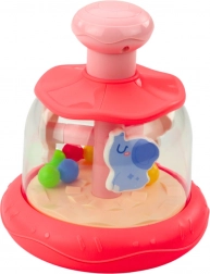 Durch Drücken des rosa Knopfes oben dreht sich das Karussell und die Tiere beginnen sich um ihre eigene Achse zu drehen, wodurch ein dynamisches und farbenfrohes Karussell entsteht. Dieses Spielzeug spricht das Sehvermögen, Gehör und die Bewegung des Kindes an und fördert so die Auge-Hand-Koordination und das Verständnis von Kausalität.
