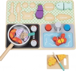 Dieses zauberhafte Holz-Küchenset ist für Kinder ab 3 Jahren bestimmt. Mit der praktischen Tafel lernen die Kinder die Namen von Gemüse, Küchenutensilien und anderen mit Kochen und Essen zusammenhängenden Gegenständen. Hergestellt aus hochwertigem Holz, ist dieses Set haltbar und sicher für Kinder.