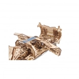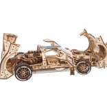 Der Zusammenbau des Modells ist eine Herausforderung mit seinen 970 Teilen, wobei alle Teile präzise ausgeschnitten sind und ohne Kleber oder Werkzeuge zusammengefügt werden. Zu den beweglichen Teilen gehören der Kühlerlüfter, die Handbremse und die abschließbaren Türen. Nach dem Zusammenbau und dem Zurückziehen des Federankers kann das Modell 5 bis 6 Meter fahren.