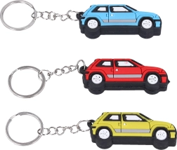 Stilvoller Schlüsselanhänger in Form eines Autos, erhältlich in drei lebendigen Farben: Rot, Gelb und Blau.