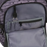 Auf der Vorderseite befinden sich zwei Gurte, ideal um Skateboard, Jacke oder Helm zu befestigen, was besonders aktive Schüler schätzen werden. Der Rucksack ist aus strapazierfähigem und wasserabweisendem Material gefertigt und mit reflektierenden Elementen für Sicherheit bei eingeschränkter Sicht ausgestattet. Als Bonus gibt es einen Metallanhänger in Form eines Skateboards.