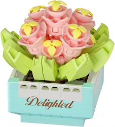 Die Teile lassen sich leicht zusammenklicken, sodass auch Einsteiger gut zurechtkommen. Zur Auswahl stehen mehrere Varianten – vom Kaktus über blühende Blümchen bis zu eleganten violetten Ähren. Jedes Modell wirkt beeindruckend und bildet eine 3D-Blütenkomposition in Pastellfarben.