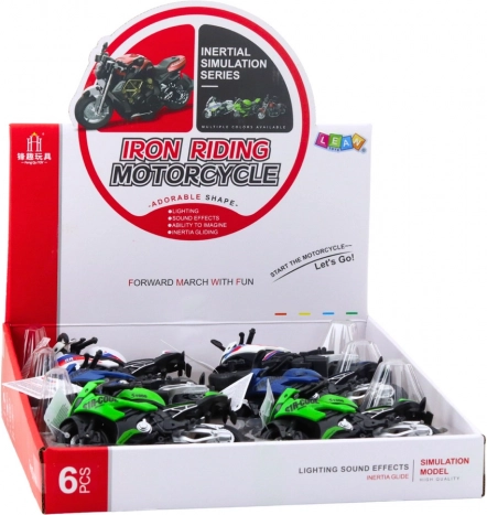 Dank hochwertigem Kunststoff und sorgfältiger Verarbeitung eignet sich das Motorrad für das Spielen drinnen und draußen. Die Stromversorgung übernehmen 3× AG13 (im Lieferumfang enthalten), sodass Sie sofort loslegen können. Das Produkt wird in verschiedenen Farbvarianten geliefert, die zufällig ausgewählt werden.