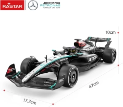 Erleben Sie Rennfieber mit dem originalgetreu gestalteten RC-Monoposto MERCEDES-AMG F1 W15 E PERFORMANCE. Das Modell besteht aus hochwertigem ABS-Kunststoff sowie präzisen mechanischen und elektronischen Komponenten, die hohe Lebensdauer und exakte Reaktionen auf Befehle gewährleisten. Sowohl Innenraum als auch Karosserie überzeugen mit detailreicher Ausführung, sodass der Wagen wie ein echter Rennspezialist wirkt.
