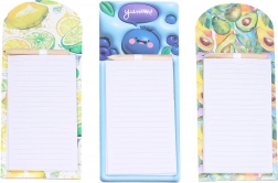 Jeder Block bietet 40 linierte Blätter für übersichtliche Notizen, Listen und kurze Nachrichten. Der Mix aus 6 Designs (z. B. Zitrone, Avocado, Banane, Blaubeeren) bringt Farbe in Ihre Küche oder Ihr Büro und erfreut mit verspielten Aufdrucken wie „HELLO!“ oder „LET’S EAT!“.